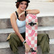 Good Vibes Girly Pastel Pink White Chequered Skateboard