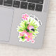 Vinyl sticker with pink flamingo and positive quote. The sticker has a watercolor illustration of a pretty flamingo surrounded with tropical palm leaves and pink flowers. The positive quote reads "good vibes only" in neat script typography. An upbeat and cheerful decal for your laptop, water bottle, notebook etc.