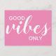 Good Vibes Only Positivity Affirmation Pink Postcard