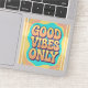 Fun quote text groovy 70s style typography with text good vibes only design.