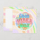 Cute retro style soft colours purple, blue, pink and green vintage Good Vibes Only quote. Flowers, Rainbow, mushrooms and other fun 1970's style hippie graphics. Blank card.