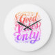 Add a pop of positivity to your everyday style with this “Good Vibes Only” script badge. Featuring flowing calligraphy and a warm orange-to-purple gradient, this pin button combines cheerful energy with decorative flourishes that give it personality and charm. The vibrant color blend stands out beautifully on jackets, backpacks, tote bags, and cork boards.