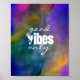 This quote poster has text good vibes only on watercolor design background for wall art decor in home or office. Art copyright Ann Powell all rights reserved.