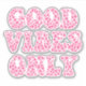 NewparkLane - Cute Contour Sticker with 'Good Vibes Only' VSCO girls quote in a retro, 60's hippie style typography in a pink leopard print.