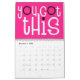 Good vibes calendar with a positive message for every month of the year in bold funky typography. The front and back covers have a black background, and inside hot pink, with white typography with hot pink or black highlights accordingly. You can change the background colours if you so wish via the Click to Customise Further option.