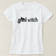 Cute Halloween Shirt features a funky text that reads good witch and is dotted with stars and a sleeping cat.