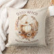 Good Witch Halloween Boho Pumpkin Pillow with a white cream pumpkin and witch hat, pampas, fall leaves and flowers on old canvas background. Easily personalise the text or leave it blank. Please visit the store for the full line of products that are available. :) - Kate Eden Art.