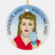 Goodbye 2020 Welcome 2021 Funny Retro Christmas Ceramic Ornament . Hand drawn vintage woman flipping the bird, middle finger humour for a horrible year but welcoming in the New Year.