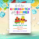 This adorable Goodbye Kindergarten, Hello Summer invitation is perfect for celebrating your little graduate's big milestone with a tropical twist. Featuring cute pineapple and watermelon illustrations in pastel colours, it's the ideal choice for a gender-neutral pool party or end of school celebration.