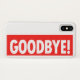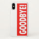 GOODBYE! is inspired by a celebrity holding a similar phone case when she was shielding herself from the paparazzi! This is a funny case that features a white background with a red label and white Sans Serif font. Send a great message to the people you don't want to talk to anymore or your haters! GOODBYE!