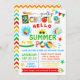 End of School Year Pool Party Invite, primary colours scheme suitable for any age. For additional changes (font colour, font style, remove or move elements, change other wording *words SCHOOL, and POOL, are not editable), click on personalise, scroll down, and click on the link "Edit using Design Tool".
