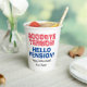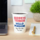 Goodbye Tension Hello Pension fun retirement party Paper Cups. Cool typography design for retiring dad, husband, grandpa, uncle, coach, friend, boss, teacher, brother, coworker, colleague, aunt, grandma, sister, mum, pensioner etc. Personalise with your own name and colours. Office humour design. Add your own photo and personalised name optionally. Double sided print.
