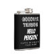 Goodbye tension hello pension funny retirement hip Flask. Alcohol / Drinking present with personalised name and quote. Fun gift idea for retired friends and family. Create one for retiree, pensioner, coworker, boss, corporate employee, colleague, coach, teacher, friend, husband etc. Office humour design with cool typography. Happy retirement!