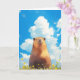 This delightful greeting card features an adorable illustration of a smiling capybara standing proudly under a bright blue sky dotted with fluffy white clouds. Surrounded by small yellow flowers, this cheerful capybara exudes a sense of joy and tranquillity, making it an ideal card for any occasion that calls for a smile. Perfect for capybara lovers, animal enthusiasts, or anyone looking for a touch of whimsy, this unique card captures the carefree spirit of nature's friendliest animal. Ideal for birthdays, congratulations, or simply brightening someone’s day!