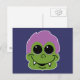 Adorable smiling goblin has green skin, funky purple hair, fangs and big sweety eyes. A fun gift for Halloween or every day.
