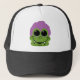 Adorable smiling goblin has green skin, funky purple hair, fangs and big sweety eyes. A fun gift for Halloween or every day.
