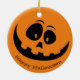 Goofy Jack-O-Lantern Face Design Ornament with customizable text.