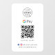 A simple custom white business scan to pay by Google Pay QR code vinyl window cling decal sign in a modern minimalist style. The versatile template can easily be updated with your company logo, graphic or photo, QR code, custom text, payment icon and social media icons (Facebook & Instagram). The icons can easily be replaced with your own as an added extra to make a truly bespoke professional design for your own business! For example you could include other social media account (such as Twitter, Linkedin, WhatsApp, YouTube) or payment icons (such as Venmo, Zelle, CashApp, Paypal, Bitcoin) and so much more! Need help? Feel free to contact me using the message button on the product page. I am happy to help with your personalization such as adding different icons. I can adapt the template to suit your business.