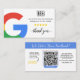 This is a clean minimalist google review business card for small businesses or anyone that has a google business profile. On the front side of the card you have the iconic Google G logo positioned in the bottom left of the card. This logo can be moved to your liking! You also have your logo, a personalised message or call to action to leave you a review on Google. You have an image depicting 5 stars which serves as a cue to let your customers know that a 5 star review is expected. Of course you must deliver on your product quality and service for this to happen. Lastly, there is a thank you message at the bottom. On the back side of the card you have a personal message at the top, simple instructions on what to do, your QR code in the centre and your business information to the right of the code. This card is 100% customisable, you can change the images, the text, the fonts and the colours. You could also just plug in your info and add your logo images and run with it. If you need any help with this template please send me a message and I will gladly assist you. Thanks! Sandy