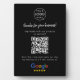 A simple custom black scan to leave a google review QR code business thank you foam core board in a modern minimalist style. The versatile template can easily be updated with your company logo, graphic or photo, QR code and custom text. The review site logo can easily be replaced with another (eg. Yelp, TripAdvisor, Facebook) to make a truly bespoke professional design to help you grow your business! I recommend you try ‘Gatherup Review URL Generator’ which is a free tool that allows you to create a website address that takes customers directly to the ‘write a review’ page for your business. You can then create a QR code online for free with the new direct URL for your business reviews! Need help? Feel free to contact me using the message button. I am happy to help with your personalisation such as adding different icons, QR code generation and more!