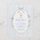 A charming blue bow gracefully sits atop the frame, adding a touch of elegance and completing the cottage-inspired look. The invitation features whimsical handwritten font elements, lending a personal and intimate feel to your announcement. This delightful script beautifully complements the overall design, inviting guests with warmth and charm.