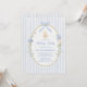 The invitation showcases a soft blue striped background, providing a serene and inviting canvas that evokes the freshness of springtime. At the heart of the design is a hand-painted oval frame, elegantly adorned with an illustration of a mother goose and gosling nestled among white and blue flowers. This playful and sweet imagery adds a sense of joy and anticipation to your announcement.