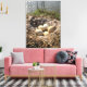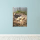 This canvas features a photo of a goose nest on a pond with five eggs.