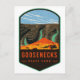 A vintage style park badge design of Goosenecks State Park overlooking a deep meander of the San Juan River located near Mexican Hat, Utah USA.