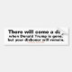 "Tonight, I say this to my Republican colleagues who are defending the indefensible: There will come a day when Donald Trump is gone, but your dishonor will remain," Liz Cheney told her Republican cohorts during a congressional hearing that on June 9, 2022. Democracy, and the peaceful transition of power, is everyone's responsibility. This isn't a pretty design, it's designed to convey a straightforward message in the few seconds when someone is behind you while waiting for a traffic light to change, or while walking past in a parking lot. Design description: The words "There will come a day when Donald Trump is gone, but your dishonor will remain" in black text. The words, "Liz Cheney, June 9, 2022" is in red text. Customize the font and color.