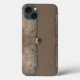 The original handbag design by ZoeSPEAK on this iPhone 13 Case was created from Zoe’s original photograph of a gopher tortoise. The closeup of the shell is used as the upper flap of the bag and the bottom curve, with a fabric background in warm shades of cocoa brown, blending with the earth tones of the tortoise shell. There is a button style golden clasp over the flap of this chic handbag case.