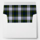 Classic white stationery business envelope, with the traditional blue, green, yellow, black, and white Gordon Dress tartan plaid pattern, on the inside. Personalise the black return address, on the front. Great finishing touch to our Gordon Dress stationery.