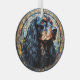 This is a pretty glass ornament with a stained glass theme, featuring a beautiful black and tan Gordon Setter dog. The dog is set against a predominantly pale blue and gold background. This makes a nice stocking stuffer or decoration for the household who loves a Gordon Setter.