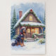 Spread holiday spirit with this charming Christmas card featuring a Gordon Setter wearing a Santa hat beside a cozy snow-covered lodge. Evergreen garlands, glowing lanterns, and soft snowfall create a warm watercolor winter scene perfect for dog lovers. The blank interior provides ample room for personalized messages, making it ideal for gifting, seasonal letters, and Gordon Setter–themed stationery collections.