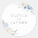 Gorgeous Botanical White & Blue Floral Wedding Classic Round Sticker