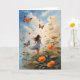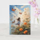Gorgeous butterflies flying amongst the orange flowers escorting a young girl safely on her journey. Blank greeting card for birthday, anniversary, new baby, thank you, sympathy, etc.