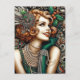 Gorgeous Christmas Flapper Woman Green Dress Postcard