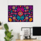 Bright beautiful flowers on a dark background make this folk art poster stand out.