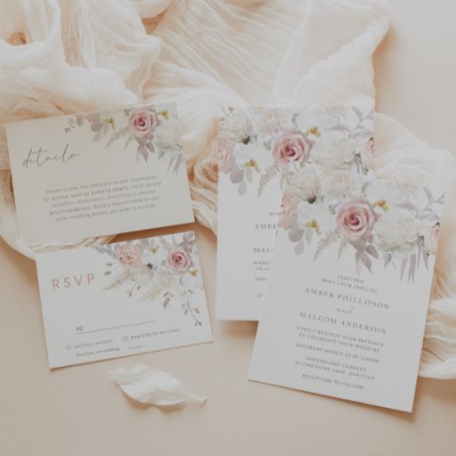 Gorgeous Elegance: Blush & White Floral Wedding Invitation
