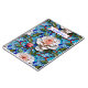 Gorgeous personalised planner with a striking blue and pink faux mosaic floral pattern, featuring vibrant blue, pink and red tiles, with coral-coloured roses intertwined with green foliage. The intricate design mimics the look of a stained glass and ceramic tiles mosaic design, creating an elegant and timeless aesthetic.