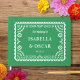 This fun and colourful guestbook features an papel picado inspired frame in white over a bright green background. the typography is elegant yet simple. All colours of this design are customisable by using the editor tool. See the collection for coordinating items!