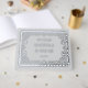 This beautiful foil guestbook features a papel picado inspired frame in silver over a light grey background. The typography is elegant yet simple. All colours of this design are customisable by using the editor tool. See the collection for coordinating items!