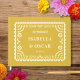This fun and colourful guestbook features an papel picado inspired frame in white over a golden yellow background. the typography is elegant yet simple. All colours of this design are customisable by using the editor tool. See the collection for coordinating items!
