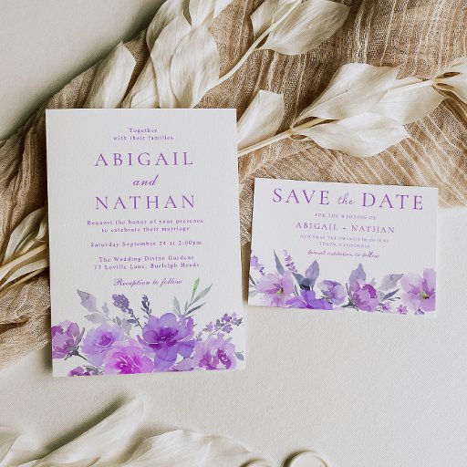 Gorgeous Purple Lavender Floral Wedding Acrylic Invitations