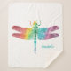 Gorgeous Rainbow Watercolor Dragonfly Personalised Sherpa Blanket