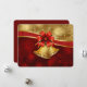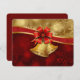 Gorgeous customisable holiday card design featuring red and gold snowflakes and gold Christmas Bells with red ribbon bow.