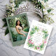 Gorgeous Spring Tiara Green & Pink Floral Spanish Quinceañera Photo Invitations Cards.