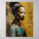 a gorgeous woman on a newspaper and yellow paint background AI generated mixed media painting