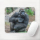 A beautiful photograph of a gorilla at the zoo printed on a mousepad.