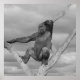 A Gorilla, perched on a tree, exudes tranquillity with an arm casually behind its head. Monochrome tones enhance the serene scene, framed by distant clouds.