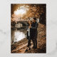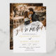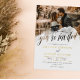 Informal photo wedding invitation with you're invited written in beautiful calligraphy across a transparent splash of watercolor decorating your photo. Add another photo to the back of the wedding invite. Beautiful photo wedding invitation with your names in gold foil.